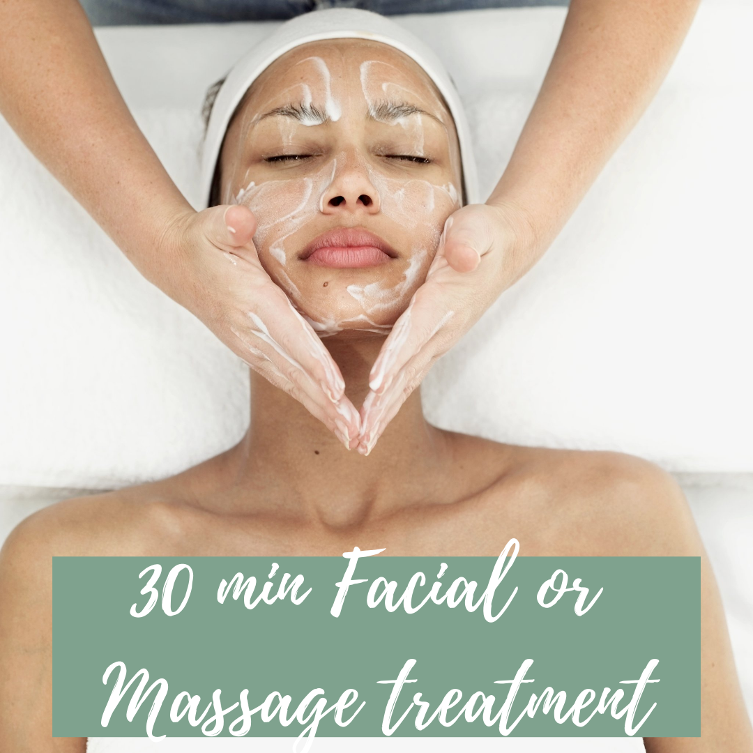 FACIAL OR MASSAGE TREATMENT- 30 MINS